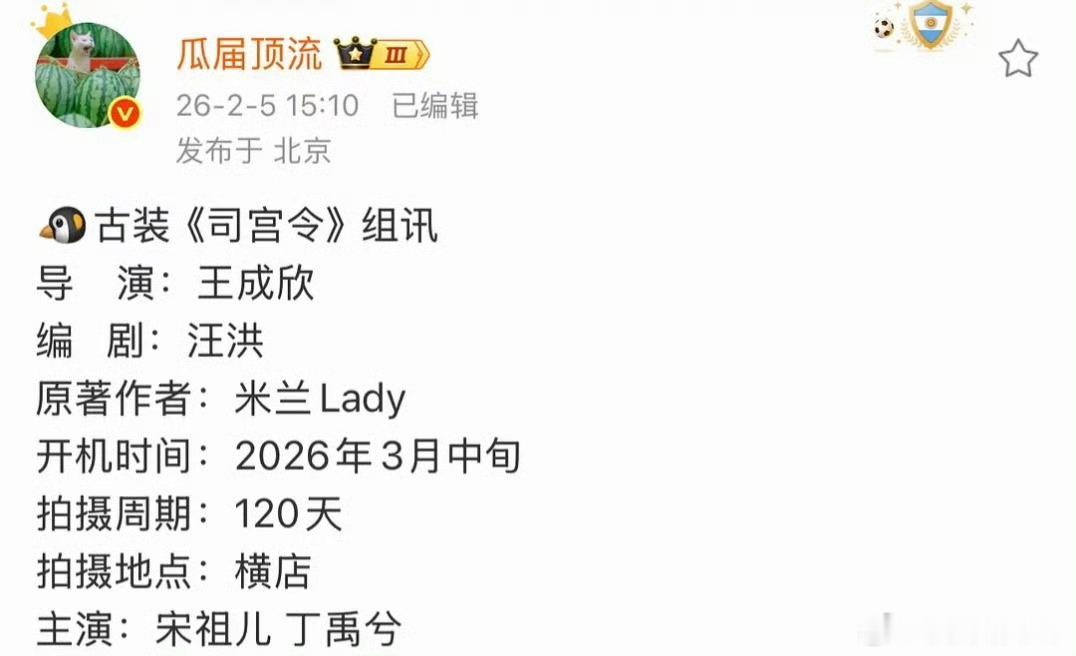宋祖儿粉要求司宫令全平台女主第一顺位,男主传的好像是丁禹兮