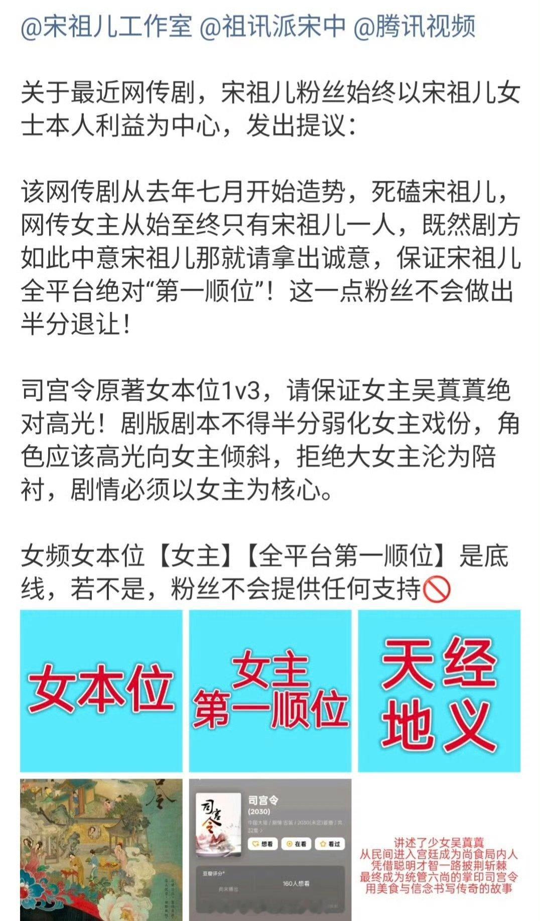 《司宫令》丁禹兮粉和宋祖儿粉都要全平台第一顺位