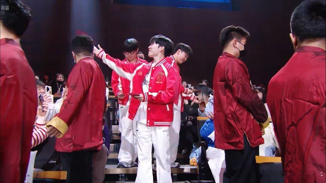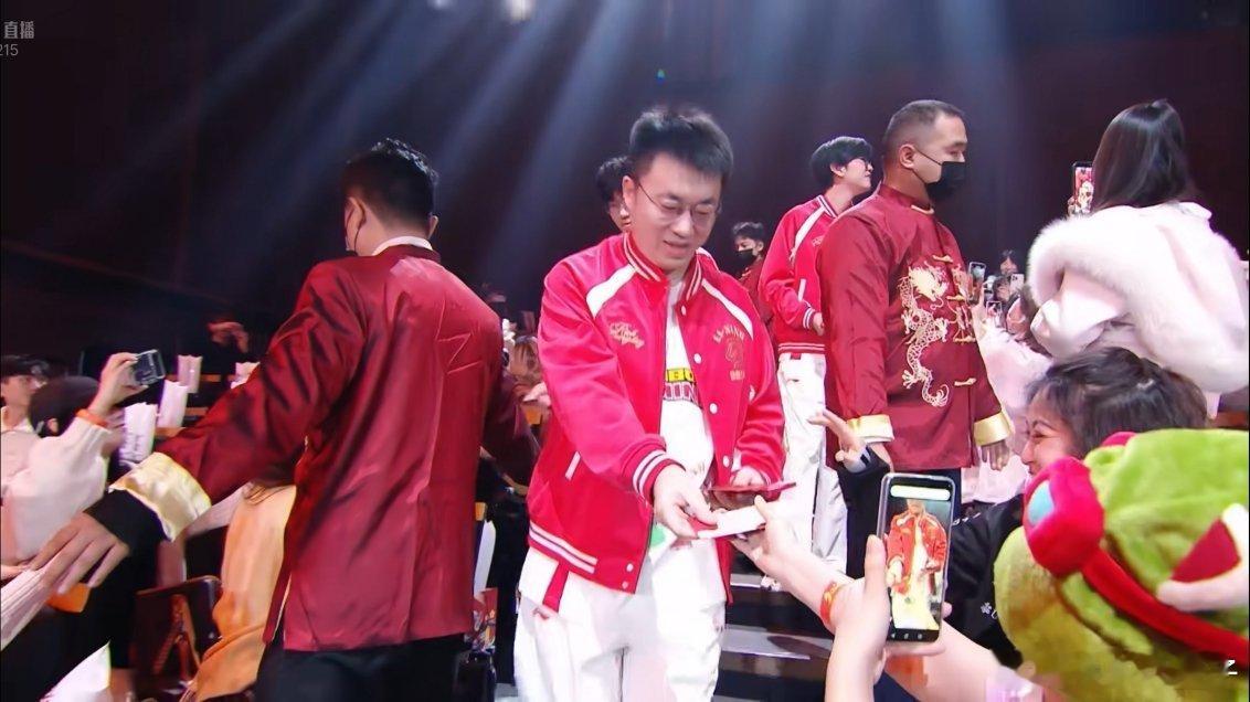 LPL选手撒红包 LPL电竞春晚开始啦,Rookie和Xiaohu批上“日进斗金”外套,跟队友们进场撒红包🧧