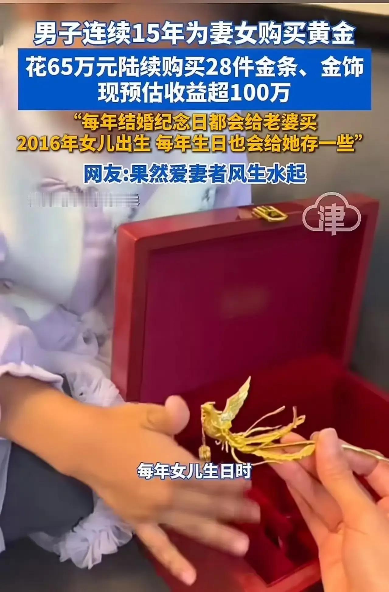 “爱老婆真的会发财!”湖南icon,男子连续15年为妻女购买黄金 花65万元陆续购买28件金条、金饰,现在金价暴涨后,预估收益超100万!网友:果然爱妻者风生水起! “爱老婆真的会发财!”这句话听起来似乎有点夸张,但当你看到湖南这位男子连续15年用心用情,用黄金堆砌的爱情故事时,或许会重新定义“爱”的意义。15年来,他每年都为妻子和女儿购买黄金,从最初的几克金饰,到后来逐步累积到28件金条和金饰,总花费高达65万元。这不仅是一份厚重的“爱心投资”,更是一份深情的“财富储备”。 有人说,爱老婆就是要用行动证明。而这位湖南男子用黄金,讲述了最浪漫的“财商”故事。每一块金条、每一件金饰,都像是对家庭的承诺,也是对未来的投资。如今,金价暴涨,曾经的“爱情投资”变成了“财富增值”。据估算,这些黄金的价值已超过100万元,成为家庭最坚实的财务保障。 或许有人会问:“这样真的值得吗?”但从这个故事中,我们看到的不仅仅是金钱的增值,更是一个男人对家庭的责任感和爱意的体现。黄金,是坚固的象征,是岁月沉淀的情感见证。正如网友所说:“果然爱妻者,风生水起!”这不仅是一句调侃,更是一种对真情实意的认可。 这个故事背后,隐藏着更深层次的人性洞察。它让我们反思:在这个快节奏、功利的社会,是否我们都在寻找一种“值得”的爱情?是否每一个为爱付出的人,都能在岁月中收获意想不到的惊喜?这位湖南男子用黄金堆砌的爱情,不仅让人感动,更激励我们去珍惜身边的人,用心去经营那份属于自己的“财富”。 或许,很多人都在追求物质的富足,却忽略了最珍贵的东西——那份真心的陪伴与坚持。而这个故事告诉我们:只要用心去爱,哪怕是用黄金,也能在时间的长河中,化作最璀璨的财富。你是否也在思考:你会为你爱的人,做些什么?或者,你正在用怎样的方式,守护你心中的那份爱?这个故事,或许正是我们每个人都需要的一份启示。黄金价值分析 黄金保值又增值