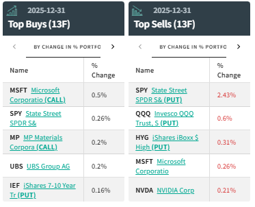 从持仓比例变化来看,前五大买入标的分别是:微软看涨期权(MSFT.US,CALL)、标普500ETF-SPDR(SPY.US)、MPMaterials看涨期权(MP.US,CALL)、瑞银、美国国债7-10年ETF-iShares看跌期权(IEF.US,PUT)。