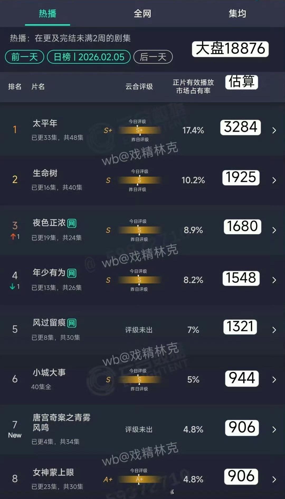 白鹿、王星越《唐宫奇案之青雾风鸣》第一天云合906w,站内热度破8000,最高8