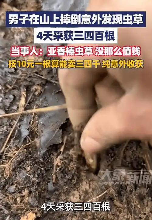 摔一跤还能赚外快?2月5日贵州开阳这位大哥的遭遇,简直把“好运从天降”给具象化了! (个人观点仅供参考,无任何不良引导) 这天天气不错,大哥寻思着上山透透气、活动活动筋骨,没曾想山路湿滑,脚下一绊,“扑通”一声就摔了个结结实实。“哎哟喂!”疼得他半天没缓过劲,手撑着地准备爬起来时,却发现手边的草丛里,密密麻麻长着些“怪东西”——粗看像小虫子,顶端还冒着点嫩黄的草芽,模样怪稀罕的。 “这不是虫草吧?”大哥心里打了个问号,赶紧把附近的都拾掇起来装进兜里。回家后急吼吼地打开手机查询,眼睛一下子亮了:还真就是虫草!只不过是亚香棒虫草,不像冬虫夏草那么金贵,但架不住数量多啊! 接下来的4天,大哥可算是铆足了劲,天刚蒙蒙亮就揣着口袋、扛着小锄头往山上跑,专挑草丛茂密的地方钻。蹲在地上一点点扒拉,眼睛瞪得溜圆,生怕漏了一根,累得腰酸背痛也乐呵呵的。等第四天收工一数,好家伙,足足采了几百根! 再一查行情,这亚香棒虫草大概10块钱一根,几百根算下来,可不就是三四千块钱?大哥乐得合不拢嘴:“本来摔一跤挺郁闷,没想到捡了个大便宜,这钱够给家里添点年货了!” 有人说这是大哥运气好,但哪有凭空来的好运?若不是他摔了一跤后没只顾着抱怨,而是多了份留心观察,又怎么能发现这藏在草丛里的“宝贝”?老话说“踏破铁鞋无觅处,得来全不费功夫”,生活里的惊喜往往就是这么猝不及防。那些看似倒霉的瞬间,说不定藏着意想不到的转机;那些不经意的留心,也可能带来意外的收获。这三四千块钱,既是老天爷给的小幸运,更是对生活热爱与细心的回馈呀!