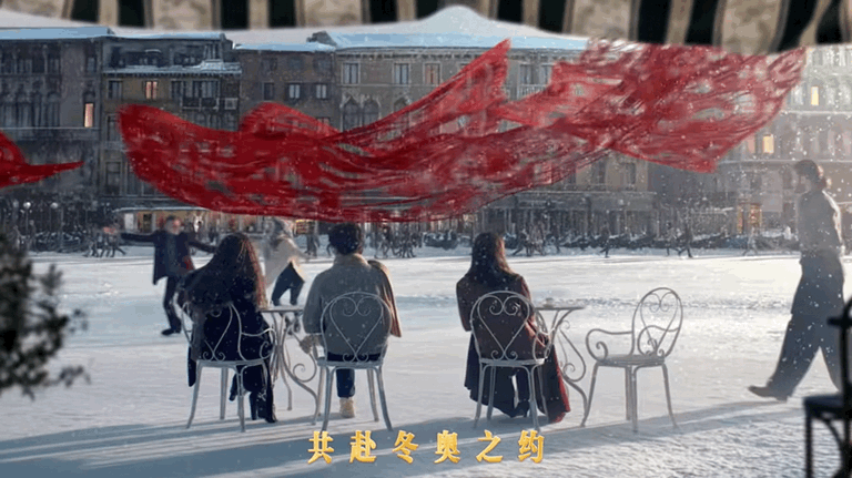 在张导独特的镜头叙事下,以冰雪为纸、运动为刃,演绎出一幅磅礴的东方剪纸美学画卷。