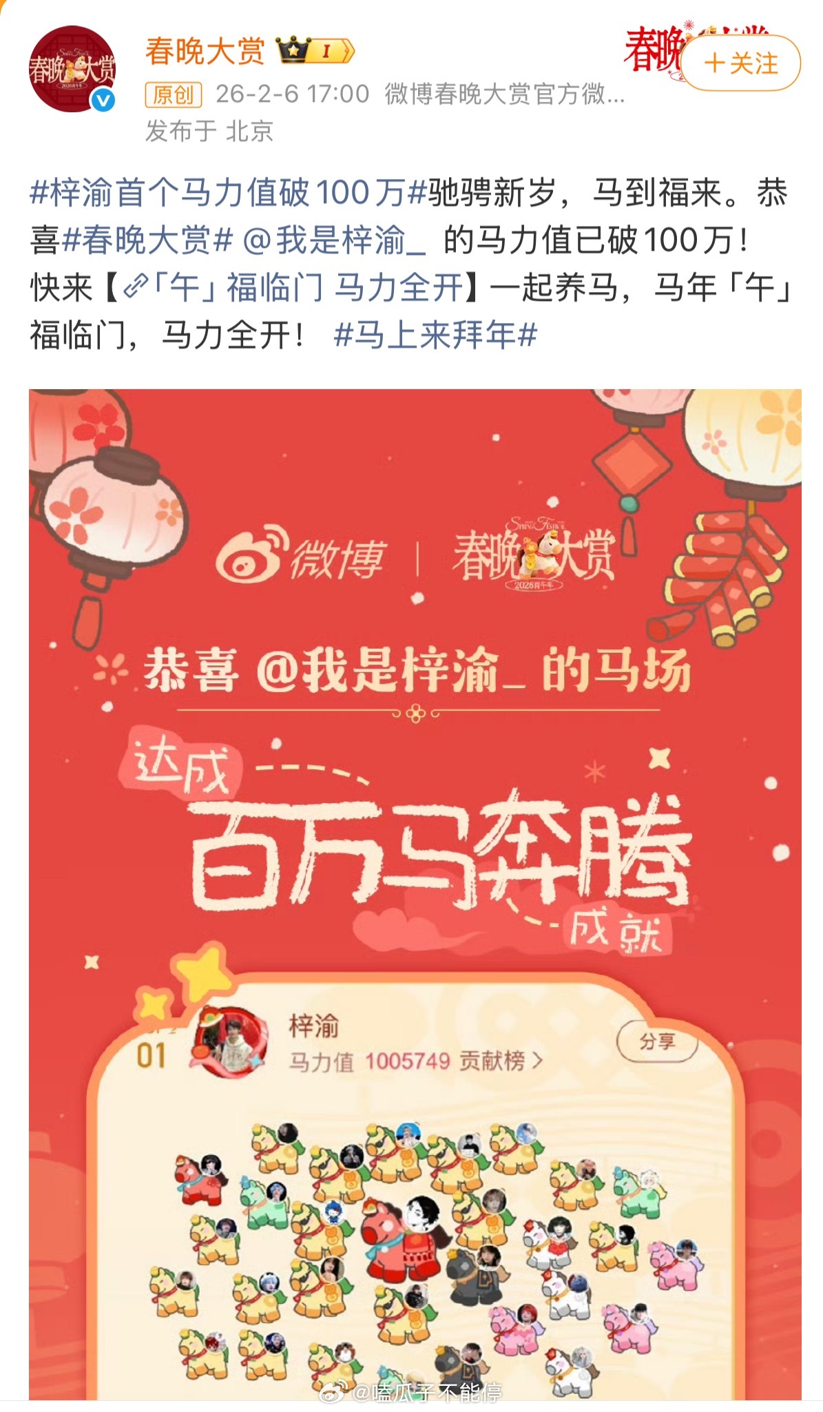 梓渝首个马力值破100万梓渝今年已经拿了多少个第一了?活粉是真的多