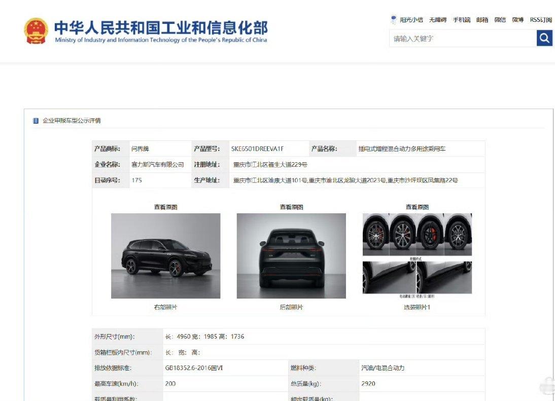 问界M6工信部公示问界m6黑武士版曝光 今天,工信部第404批新车公示中,备受瞩