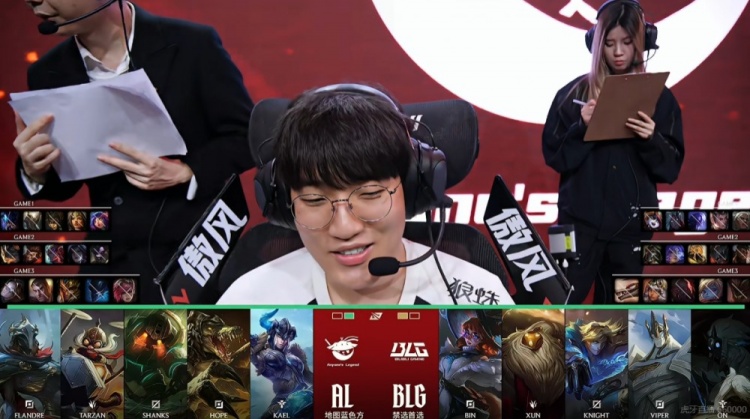 BLG:上单Bin、打野Xun、中单knight、下路Viper、辅助ON