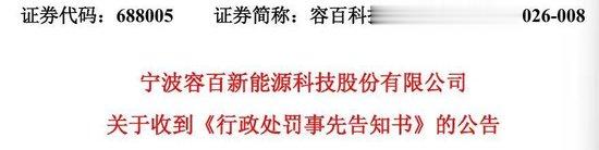 据此,宁波证监局拟决定对容百科技、白厚善、俞济芸给予警告,并分别处以450万元、300万元、200万元罚款。以上处罚为拟定处罚,容百科技方面还享有陈述、申辩和要求听证的权利。