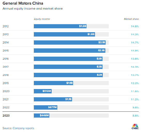 通用汽车曾在2010年至2023年期间,将中国作为其最大的销售市场,但它并未做好应对中国本土汽车产业崛起的准备。随着中国汽车制造能力的提升,通用汽车在华年利润从2018年的约20亿美元,一路下滑至2025年,连续第二年出现亏损。