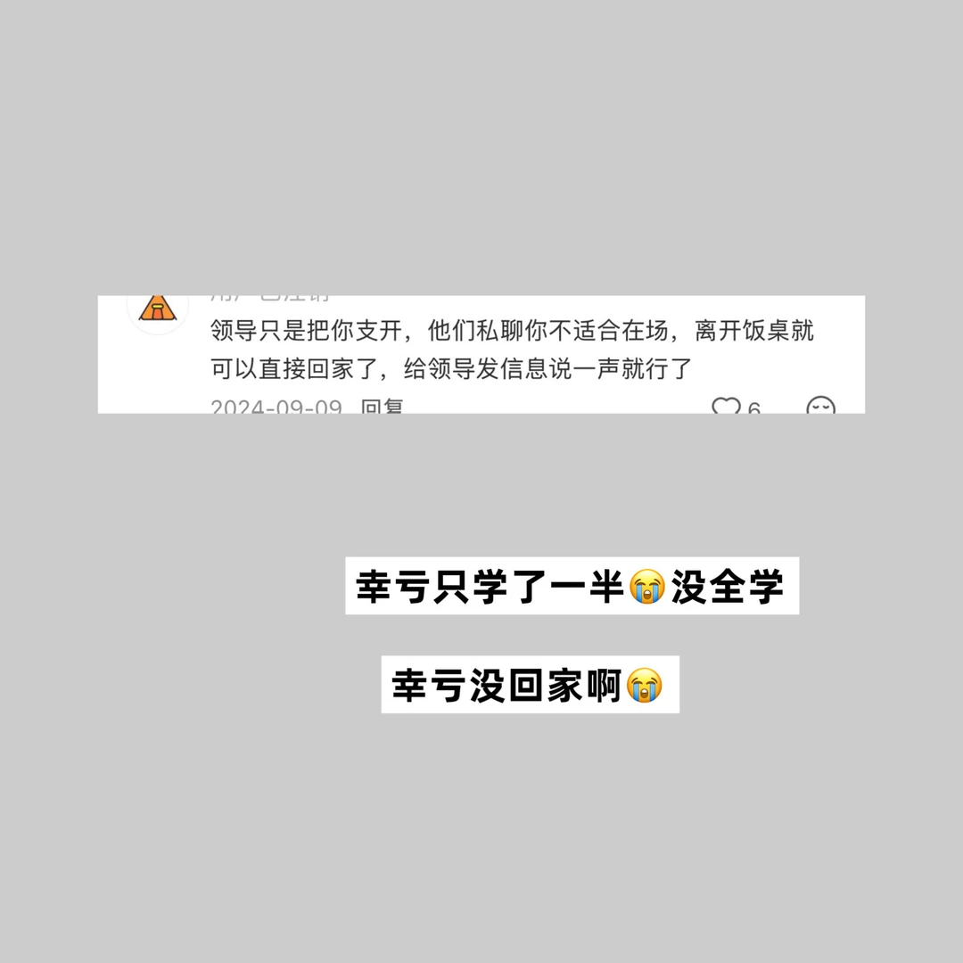 我之前在网上刷到过说领导让你去拿酒车里没酒怎么办!大家都说领导的目的不是为了让你拿酒而且为了支开你 刷到的时候我就默默记下这个职场生存小指南了! 没想到有一天这种事真发生了!饭局过半领导让我拿酒!我去领导车后备箱看真没有酒! 我心想稳了!这题我会!![得意R] 我就在外面等着就行了!领导让我进去时会给我发信息 我等好久!!还心想领导和客户挺多话要说啊!直到领导给我发消息问我怎么还没回去,他们都快吃完了 我才知道领导是真让我拿酒😭他后备箱是真没有酒😭
