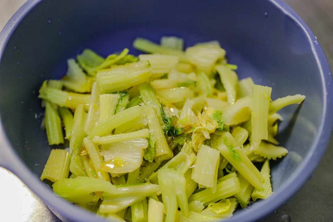 🌈早上榨西芹汁,剩余的西芹芯儿也不能浪费了,汆烫过之后,拌了一个小凉菜。