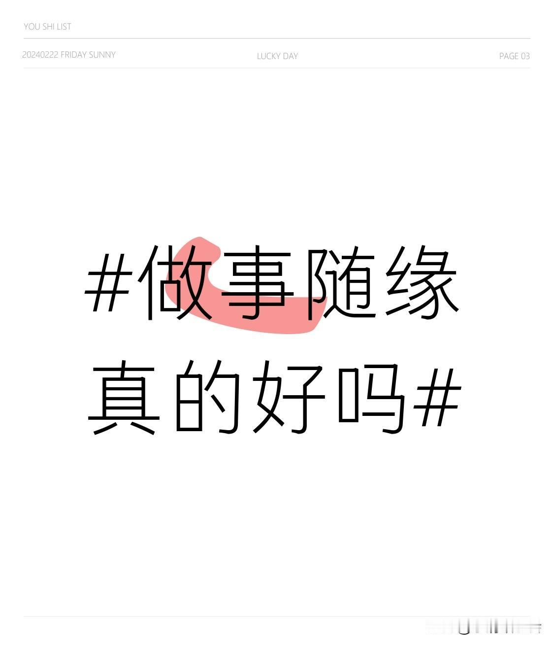 做事随缘真的好吗?这问题在职场、感情等场景常被提及。 随缘有好处,能让人放下过度控制的焦虑,以开放心态面对人际关系。比如高压工作中,适度随缘能减少决策瘫痪,还可能让你抓住意外机会。但它也有局限,若把随缘当不作为的借口,在追求职业晋升等重要目标时,就容易机会流失。 其实真正的随缘是尽己所能后的不强求。追逐梦想时,努力了未必成功,若一味执着结果,会心力交瘁。而随缘的人会拼尽全力做好当下,结果好坏都平常心接纳。所以,“有准备的随缘”才是上策。