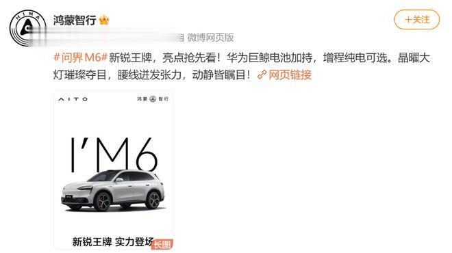 在工信部公示后,鸿蒙智行官方在社交媒体发文介绍了问界M6有关信息,可以看到问界M6增程版有37/53度电池可选,纯电版则标配100度电池。