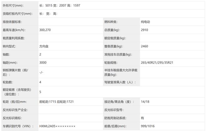 小鹏GX纯电版此次申报了双电机版,前/后驱动电机峰值功率分别为160kW(约合217匹马力)/270kW(约合367匹马力)。