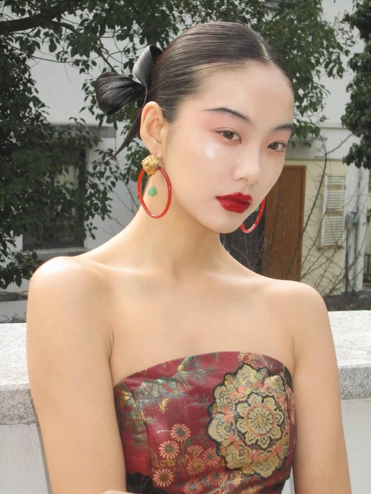 素净骨相撞上浓烈红唇.基础班新中式课堂丹丹造型 新中式 化妆师进修