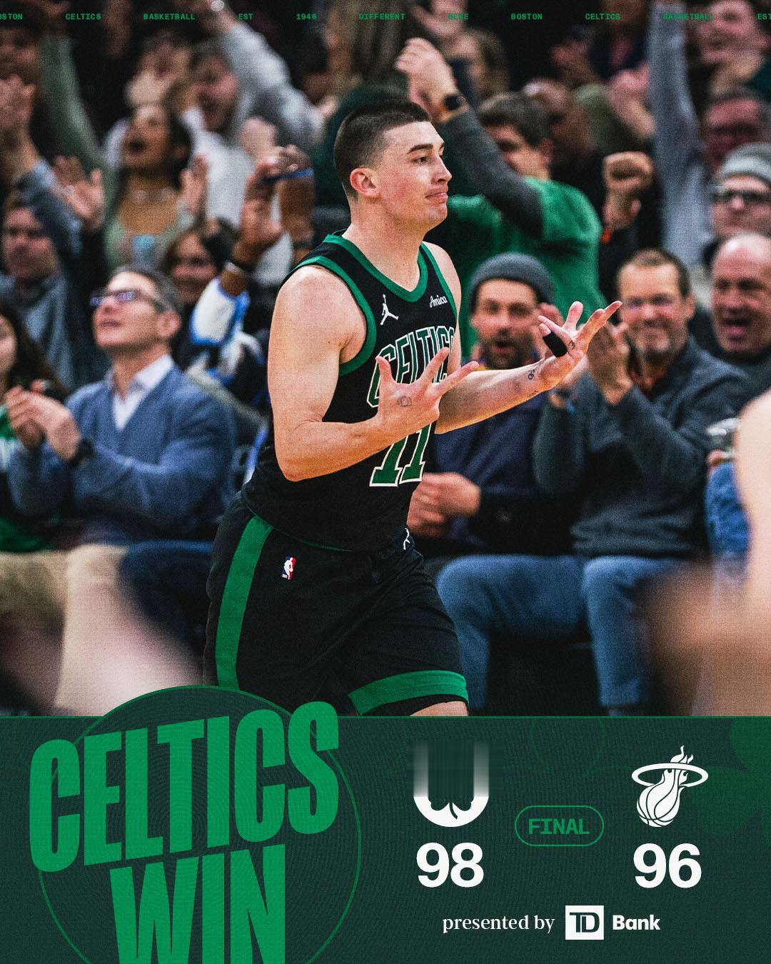 虎扑02月07日讯凯尔特人以98-96击败热火。