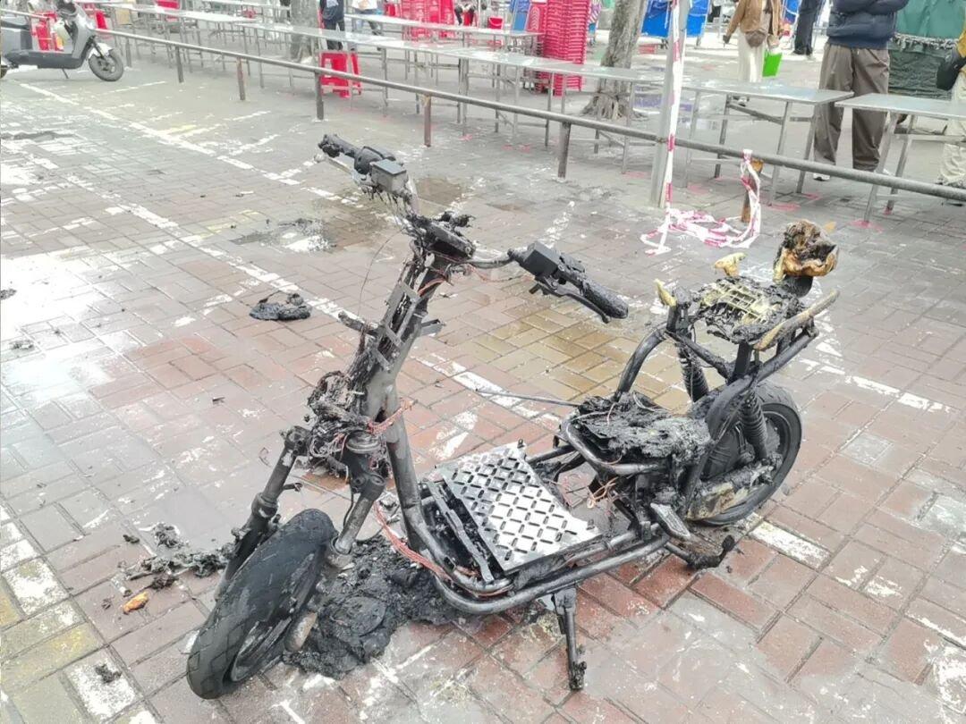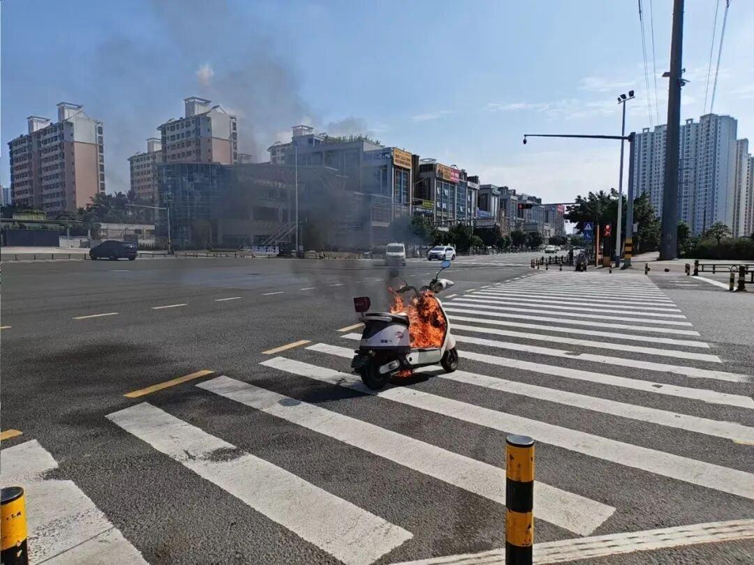 1月13日,海口市琼山区大英山西六街与大英山西四路交叉口路边一辆电动自行车着火,起火原因正在调查中。
