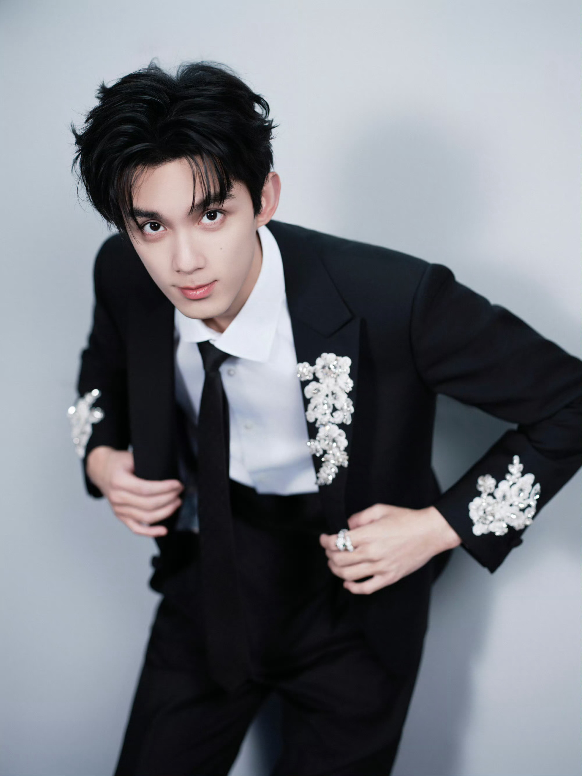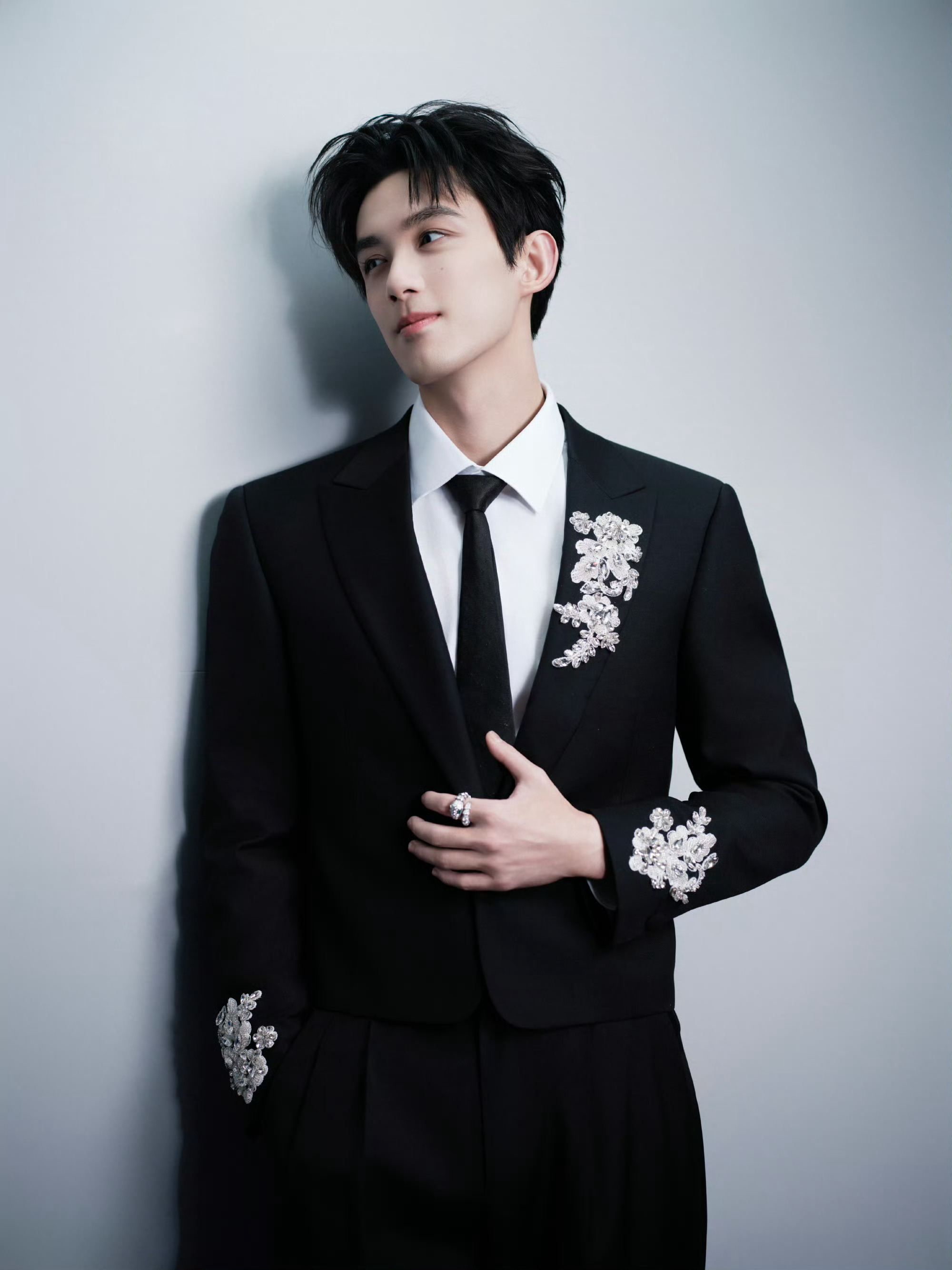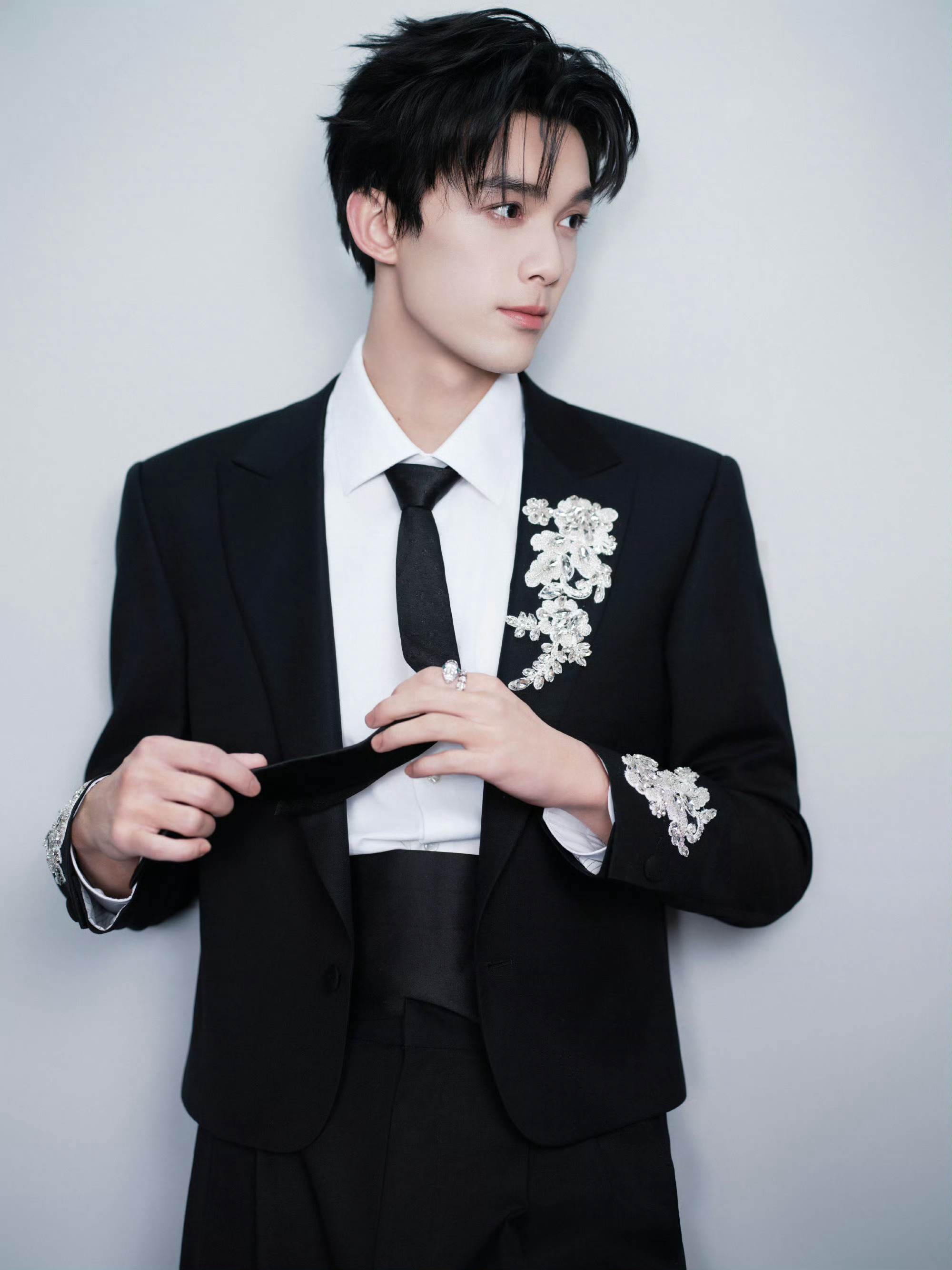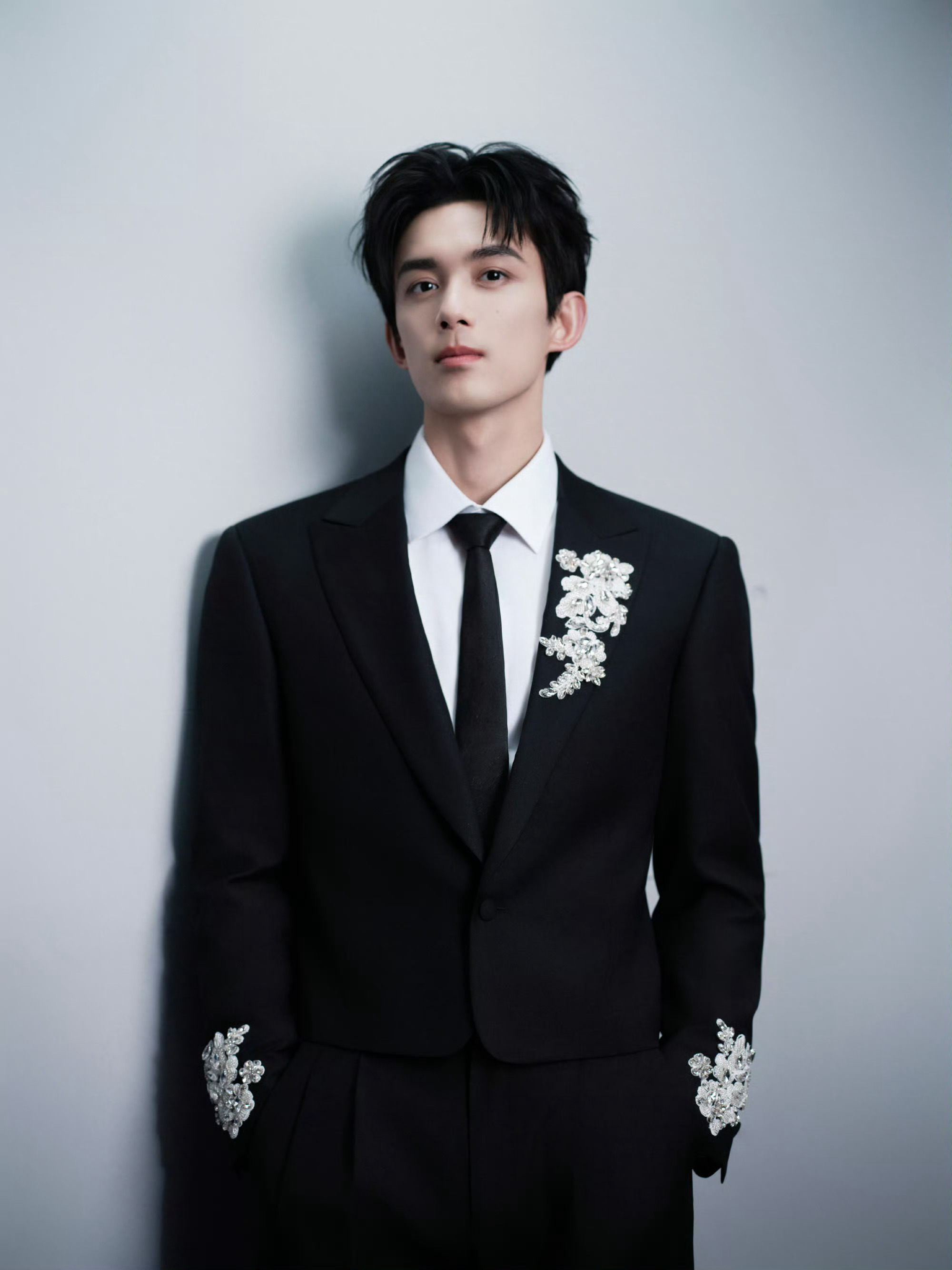 吴磊 今日 中国网络视听盛典 造型,修身剪裁的短款西服,精美的珠花刺绣装饰,Bvlgari灵蛇戒指点缀指间,俊朗有型的矜贵格调。🖤🐍💎