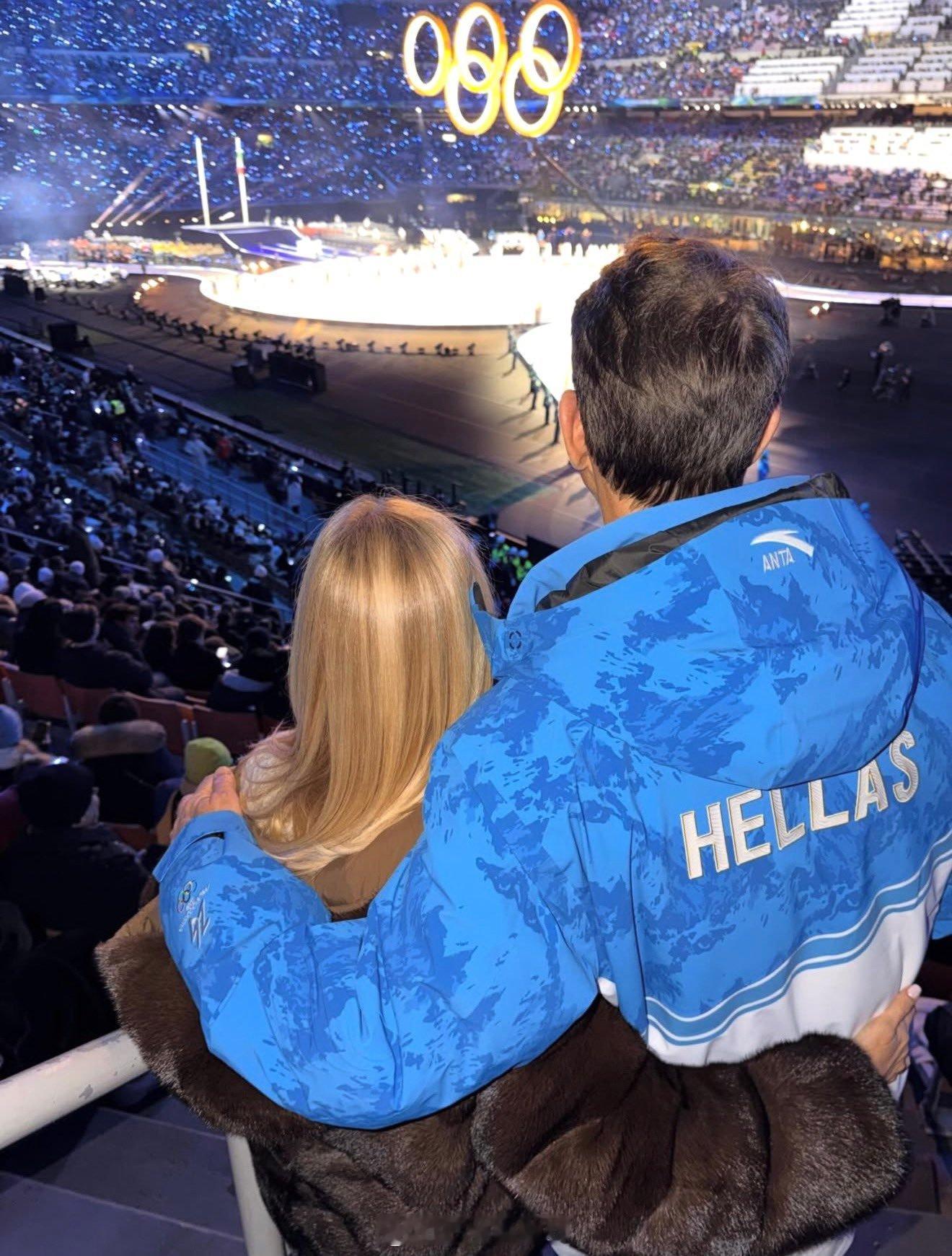 昨天晚上希腊丹麦的帕夫洛斯王储、玛丽尚塔尔王储妃和尼古拉斯王子都有在意大利米兰观看意大利冬奥会开幕式🇮🇹