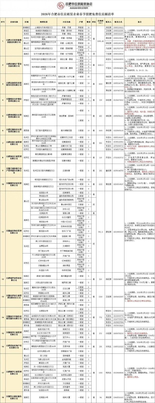 自2023年春节起,合肥市住房租赁协会联动多家会员企业,发起“春节留肥免费住”公益活动,将温暖与善意,通过免费房源传递给那些因工作无法回家过年的城市建设者们。