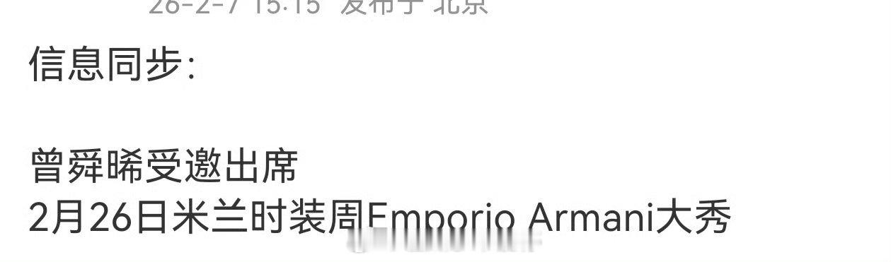 曾舜晞即将出席米兰时装周Emporio Armani大秀!
