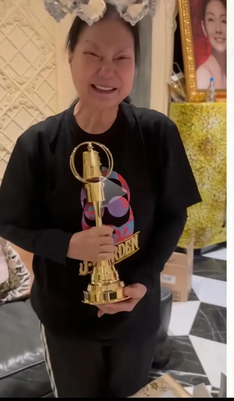 小S把金钟奖送给妈妈,妈妈激动的又哭又笑,应该是又想大S了。 大S在的时候,一家