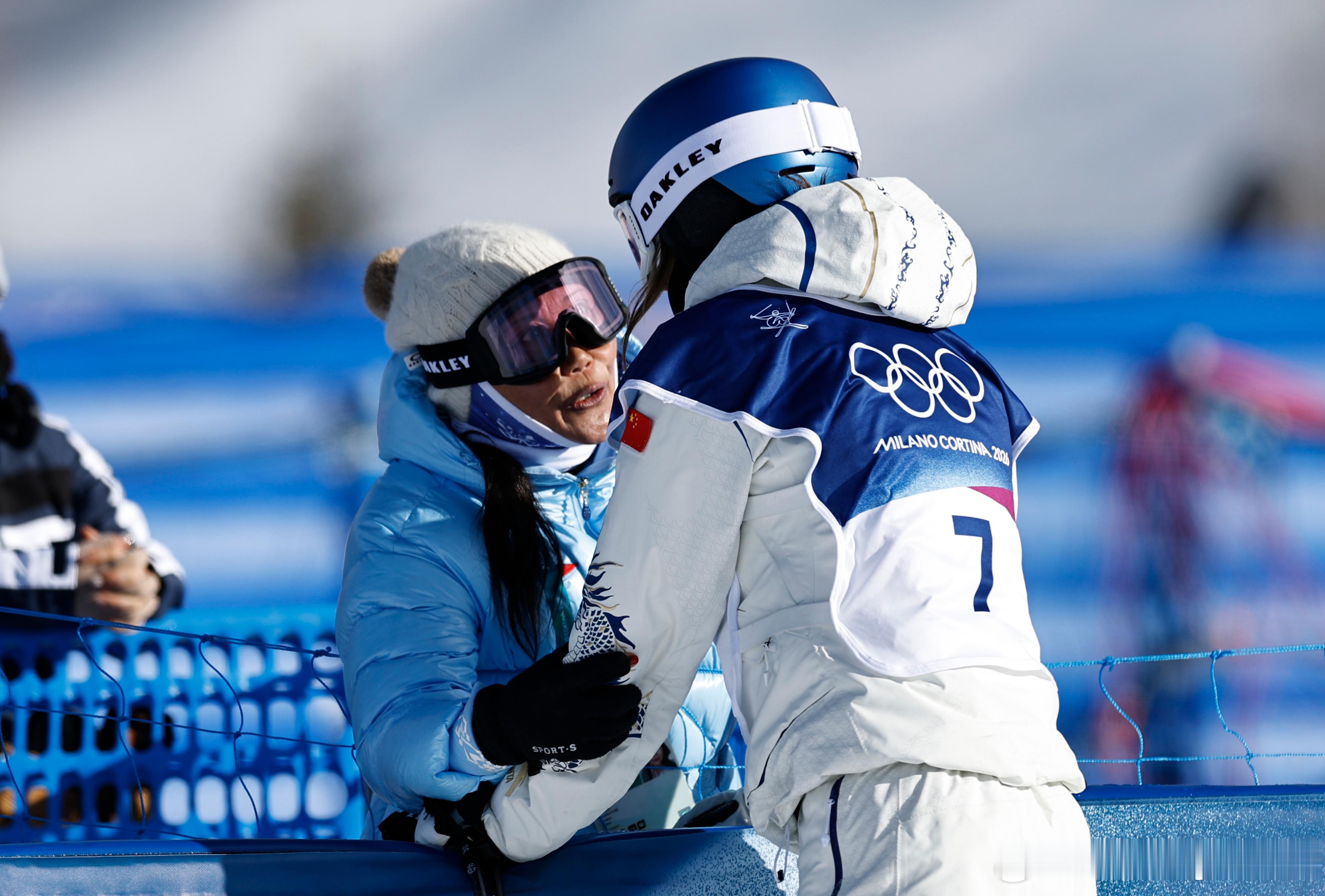 谷爱凌第一滑摔倒妈妈拥抱安慰🫂没关系别受伤,第二滑加油