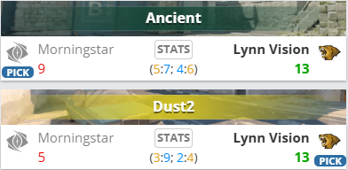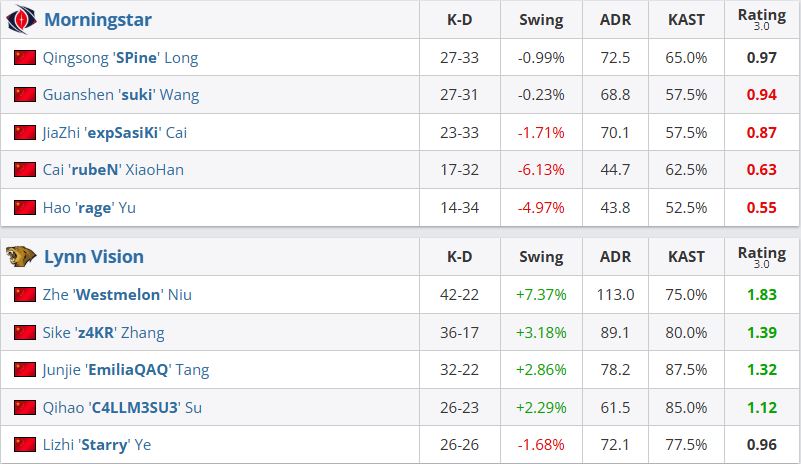 图二LVG选择Dust2,suki状态低迷,Morningstar无力抵抗,LVG以13-5轻松完成横扫。