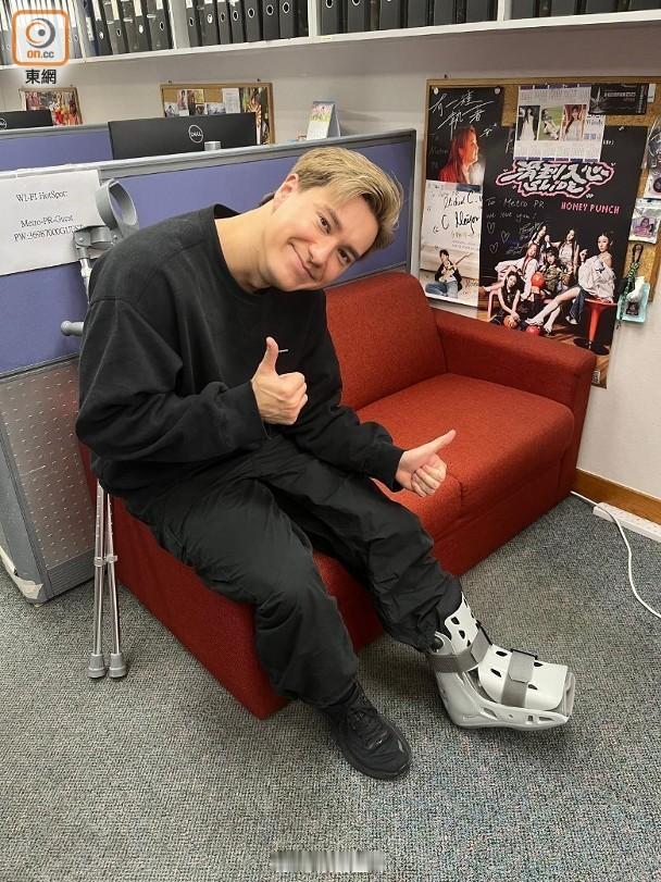 藝人朱敏瀚及陳煒今日(7日)現身電台錄製節目,早前踢足球意外傷及腳部韌帶的朱仔,日前接受手術後,今日需仰賴拐杖支撐行走,他透露於本月2日接受了手術,目前恢復進度良好,醫生叮囑了六個禮拜不能碰地,因此之後盡量都會在家中休息,笑言自己提早收爐,他又指今日由好友張振朗載來現場,而早前住院一晚時,好友周嘉洛買了蛋撻來探訪,大讚好友們貼心。