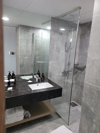 旁边就有CU便利店跟GS25还有BHC炸鸡 OLIVEYOUNJ里的也很近 ,拉开窗帘就能看到美丽的海景啦。
