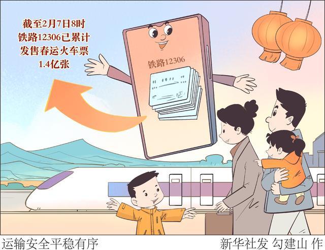 记者从中国国家铁路集团有限公司获悉,2月7日开始发售2月21日(正月初五)车票。截至2月7日8时,铁路12306已累计发售春运火车票1.4亿张。