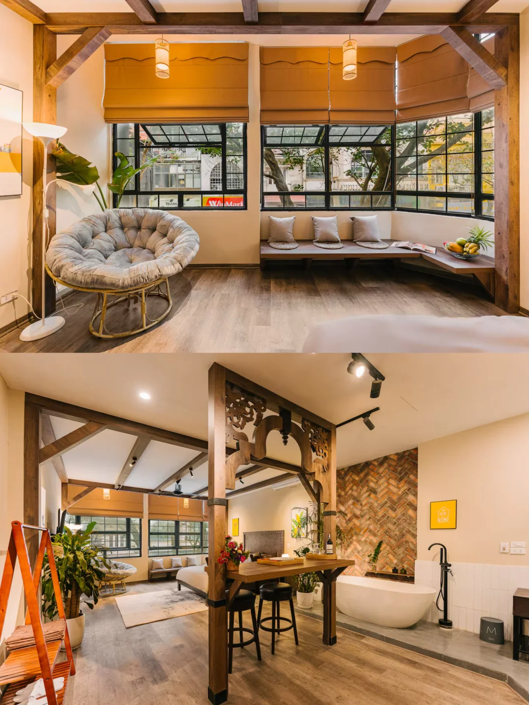 -走入民宿的瞬间,最吸引人的一定是那一扇超大的窗户,窗外是烟火气十足的老街日常