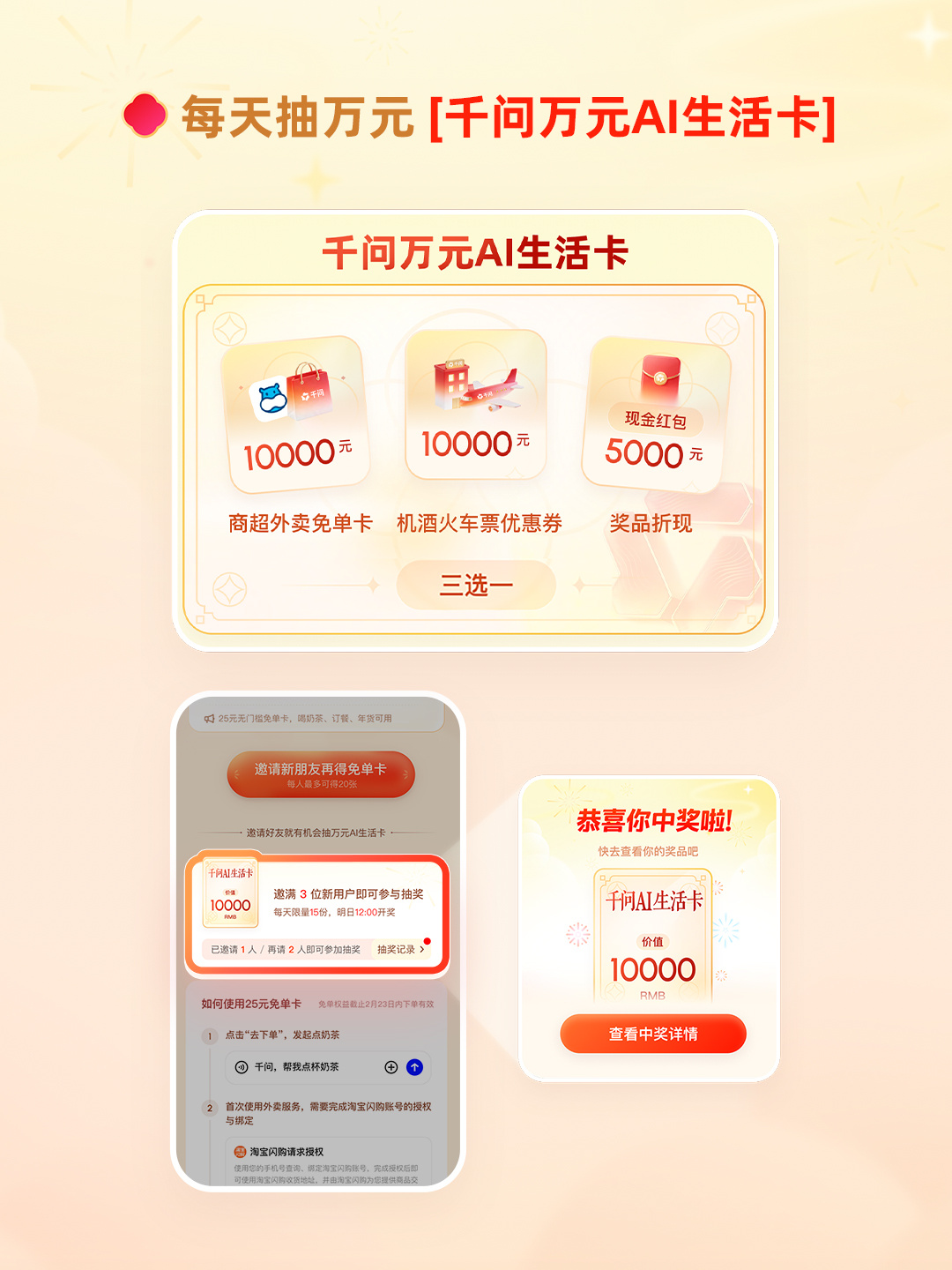 AI考验我人脉的时候到了 千问30亿福利来袭!25元免单卡到手,有效期延到2.2