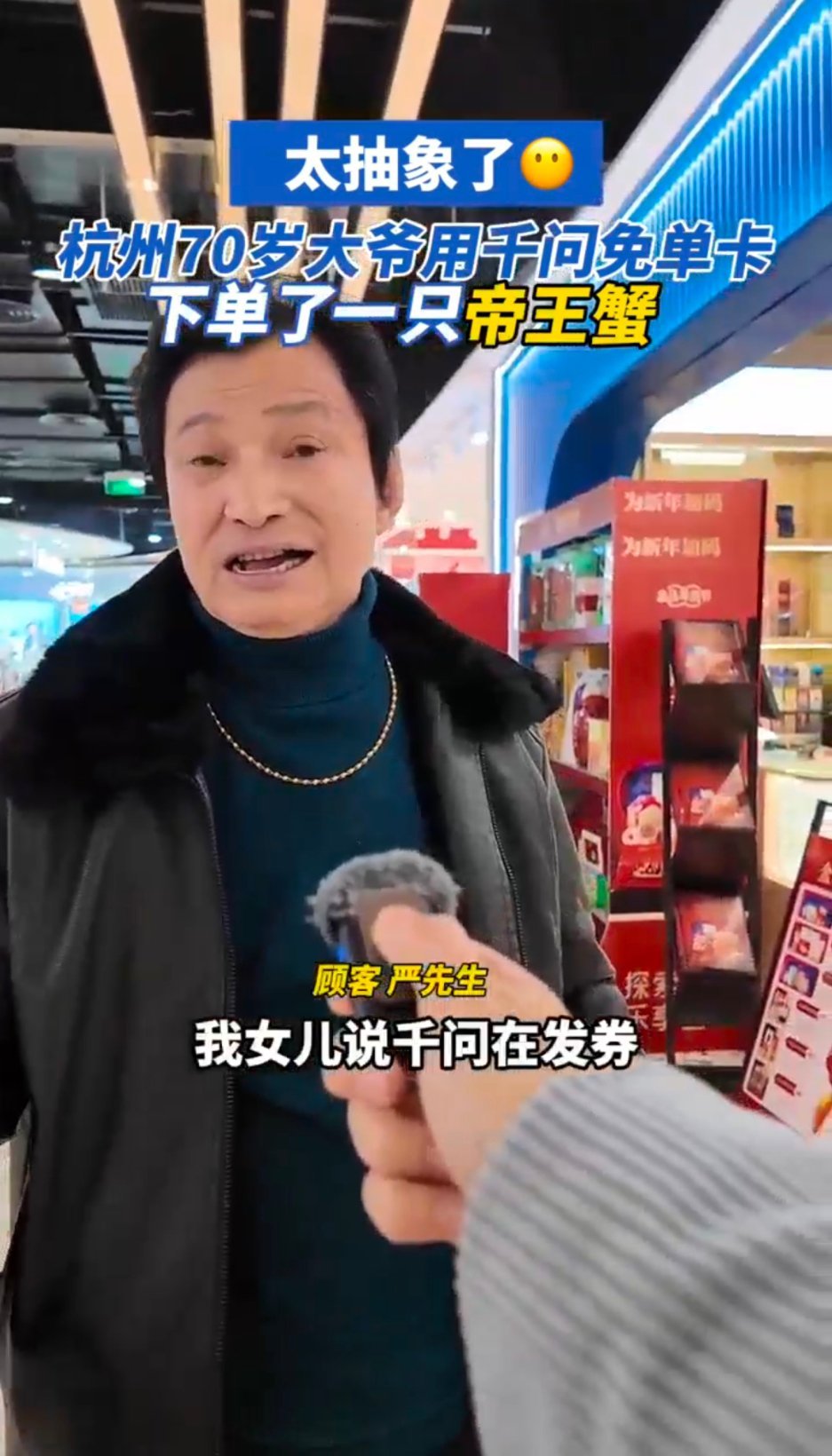 杭州70岁大爷用千问在盒马买帝王蟹太暖心了!科技不该只被年轻人玩,帮长辈便捷服务