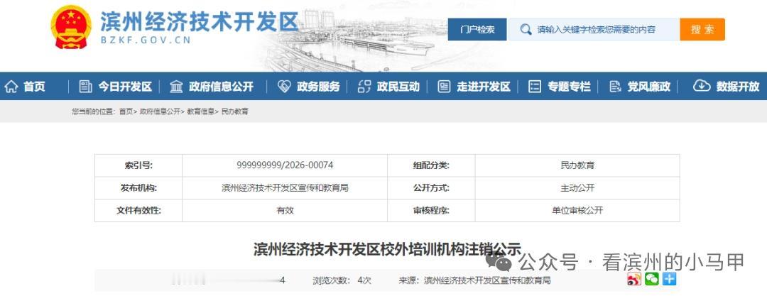 滨州高联等4家教培依法注销 近日,山东滨州滨城区行政审批服务局发布公告,依法注销滨州高联教育培训学校等单位办学许可证,并对注销信息进行公示,公众可于2月13日前书面反馈意见。公告明确,自公示之日起,相关机构不得再以原校名义开展教学等活动,违者将被追责。 同日,滨州经济技术开发区相关部门也发布公告,依法注销君格艺术培训学校有限公司办学许可证,公示反馈截止日期为2月11日,同样禁止该机构后续以原名义开展相关活动,违者追究法律责任。