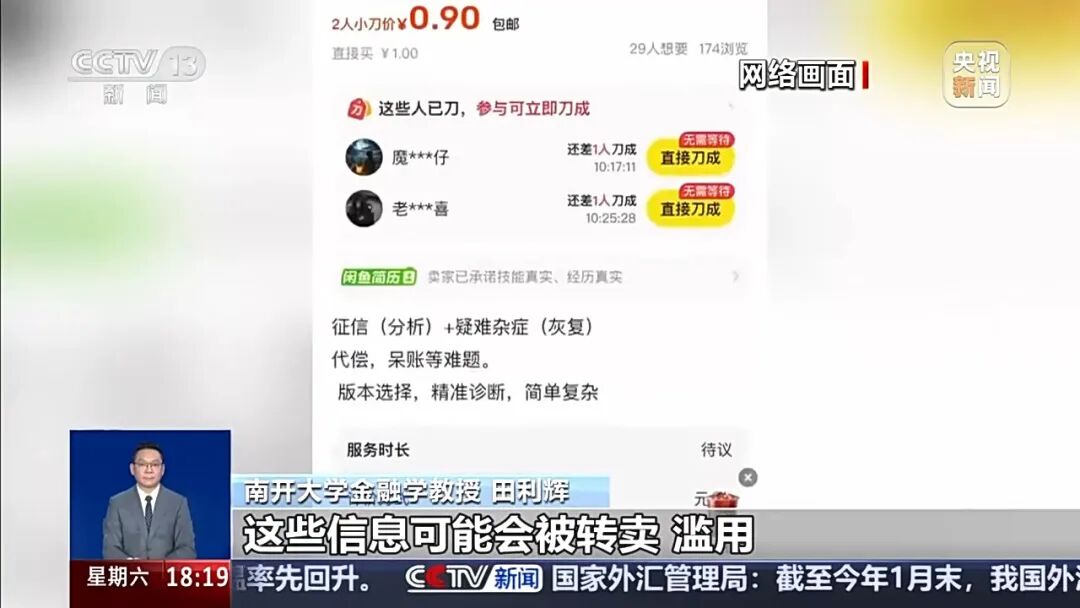 南开大学金融学教授田利辉:第一个是法律无效的陷阱。根据国家征信业管理条例,只有信息本身存在错误或遗漏时,才能通过正规的异议程序去纠正,如果逾期的记录是真实准确的,那么任何试图通过申诉来抹掉它的合同在法律上是无效的。第二个是信息裸奔的陷阱,你需要把身份证、银行卡、详版征信报告等这些最核心的个人信息交给对方,这些信息可能会被转卖、滥用,导致您遭遇更严重的诈骗或背上不明债务。第三是刑事共犯的陷阱,很多中介所谓的专业操作,可能会是教唆或帮助您伪造住院证明、破产文件,甚至国家机关的公章,去欺骗银行和征信系统,一旦被发现了,您不仅修复不了征信,反而可能因为涉嫌伪造公文、印章或诈骗变成犯罪嫌疑人。
