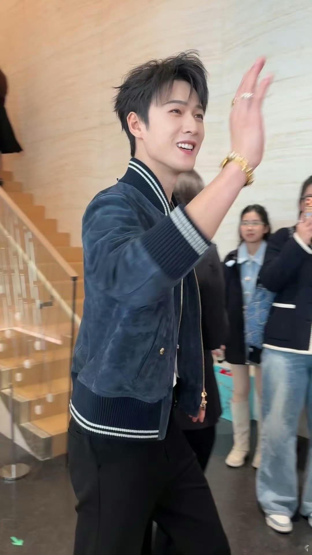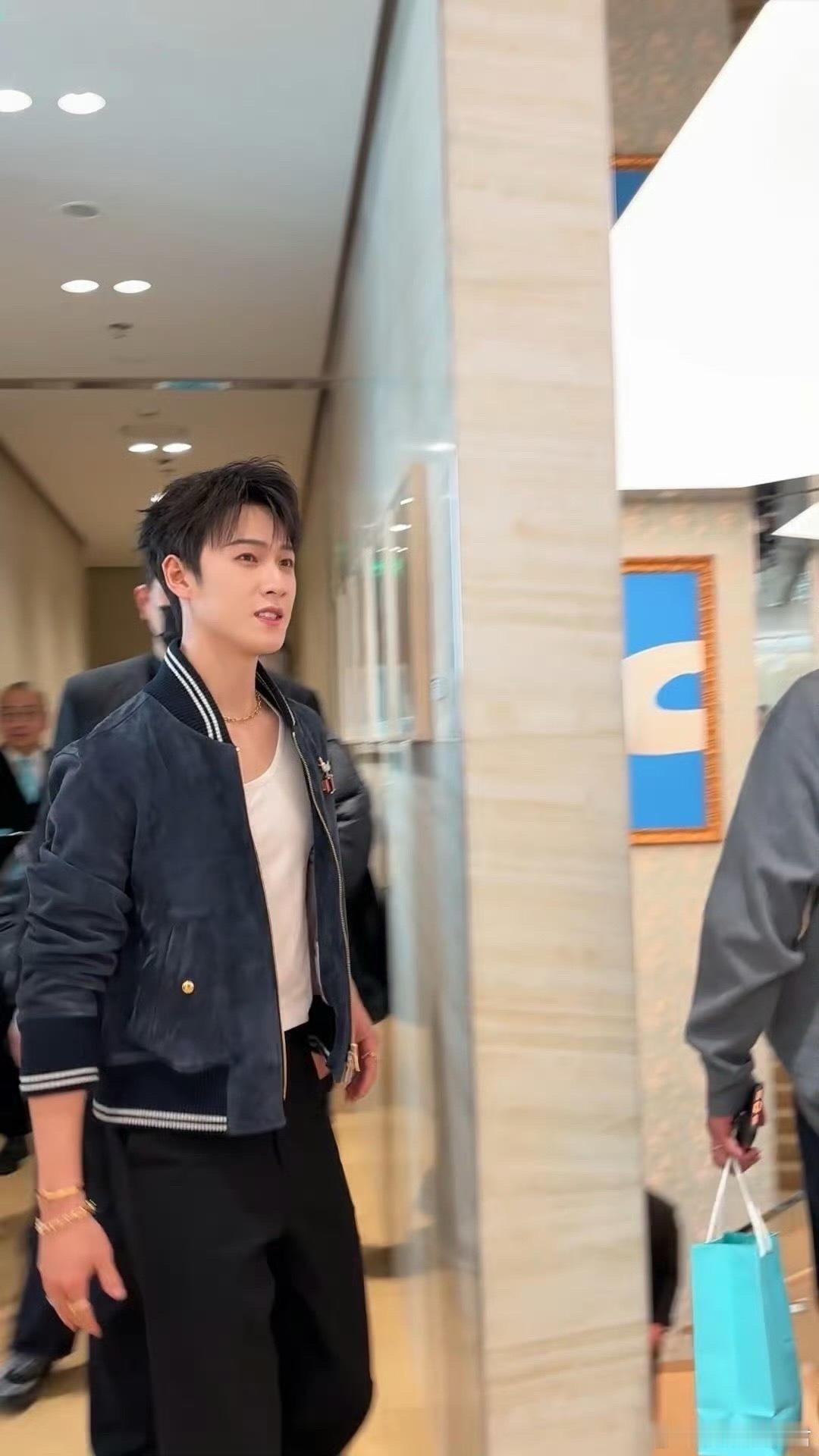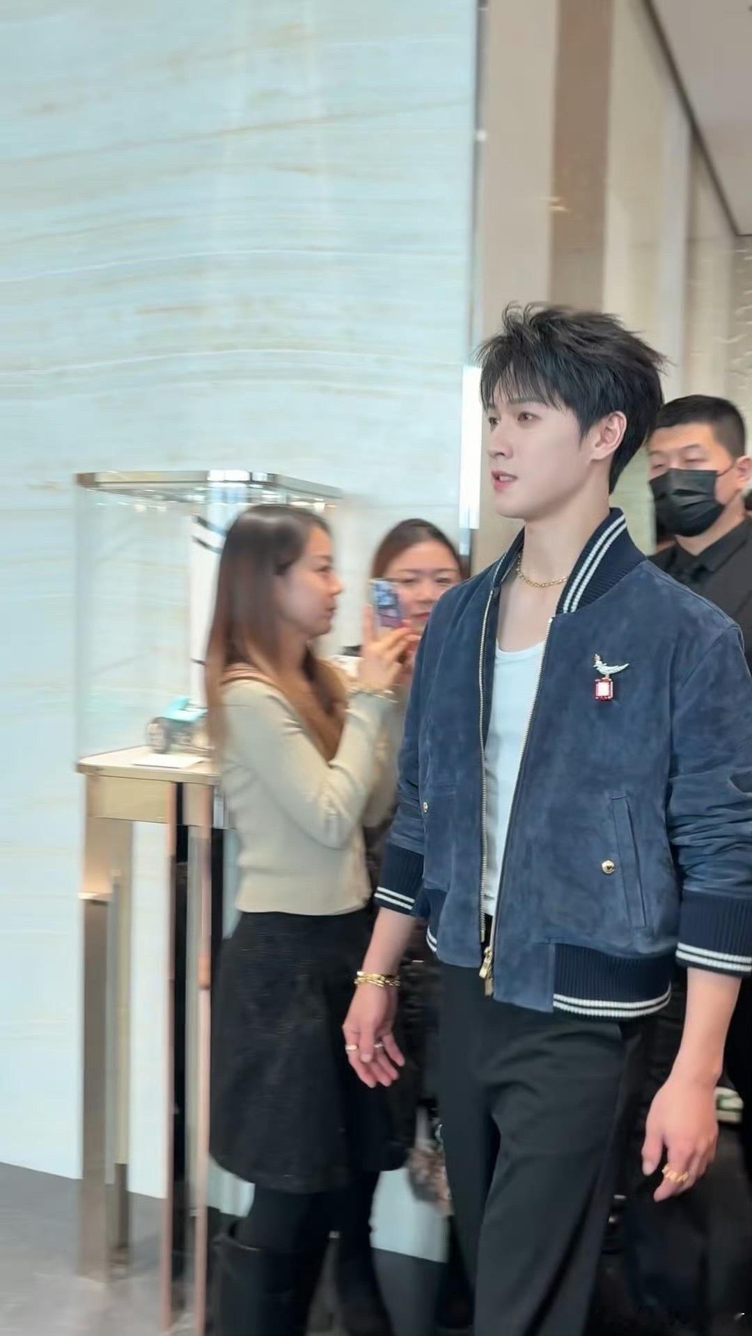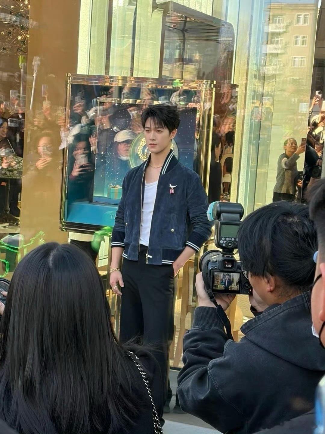 李昀锐三里屯线下活动李昀锐 线下生图帅成啥了都蓝色夹克内搭白背心简约清爽,典型的