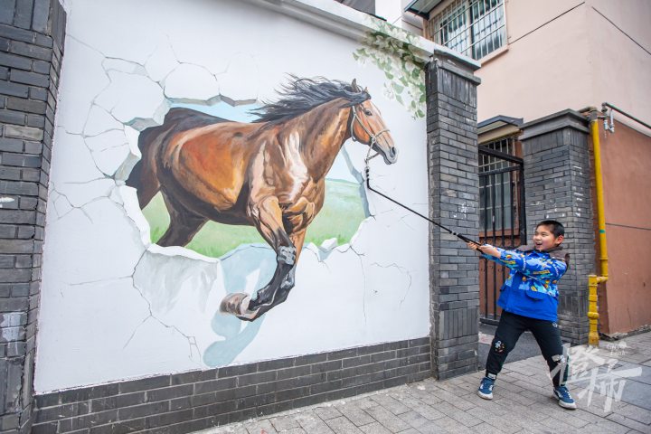 马塍路,“马”元素的景观墙绘随处可见。记者陈中秋摄