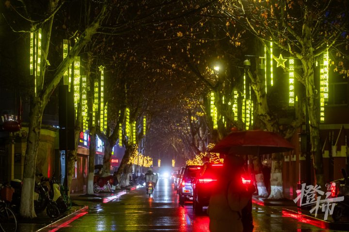 马塍路两侧行道树上悬挂的诗词灯饰。记者陈中秋摄