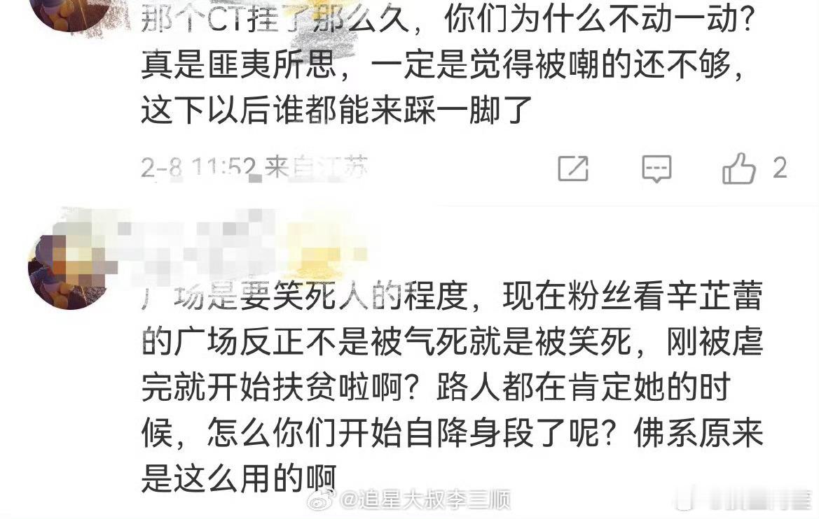 辛芷蕾粉丝在骂工作室不作为,还是因为广场上被用来给别人抬咖的事情。