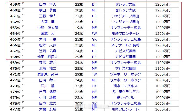 找到一份媒体渠道的J联赛球员工资,J1球员平均年龄27.05岁,平均每队注册34人,平均年薪132万人民币,356人年薪100万人民币以上,468人年薪在50万人民币以上,537人年薪在25万人民币以上,“底层工资”是13.24万人民币,两位16岁小将所得。