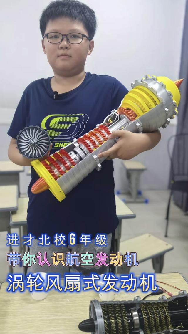 获奖后,父子俩没有停歇,立刻投入新课题。“我的梦想是当一名飞行员,所以爸爸就开始带我做飞机涡轮发动机。”接受记者采访时,段砚觉熟练地拼接起了绿、橙、红三色发动机部件。他还透露,这个模型其实已经完成了,平时到社区开科普公益讲座也会带上展示,“就当作明年比赛的预演。”