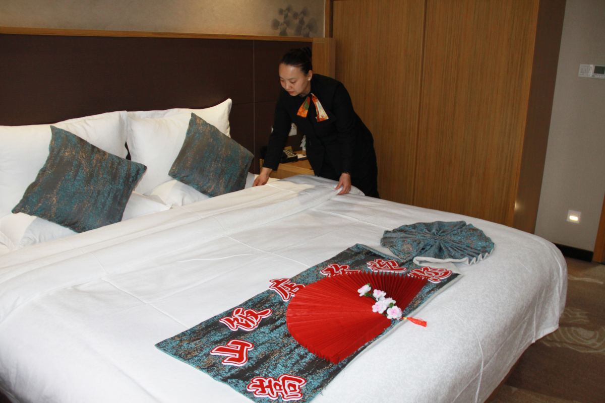 细节处见真章。客房楼层特设“温馨服务台”,备有茶饮、小食及办公用品,房间内点缀的手工装饰更添喜庆温馨。工程安保部门会前已完成全面检修,会议期间24小时值守,确保设施平稳运行;安保团队强化巡查与车辆引导,筑牢安全防线。多部门协同实现“零差错”运营,展现出饭店高效的政务接待实力。
