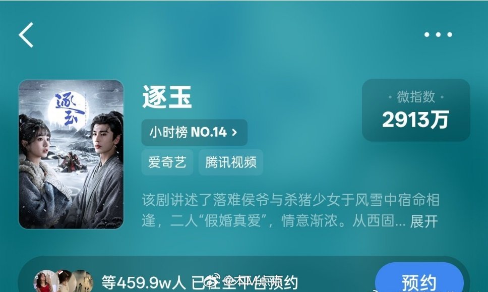 张凌赫 田曦薇《逐玉》🐧🥝预约均破200w,这剧还真的端水到底 暂定3月6号🐧🥝联播,日子越来越近,预定3月古偶顶流了 有点点忐忑啊