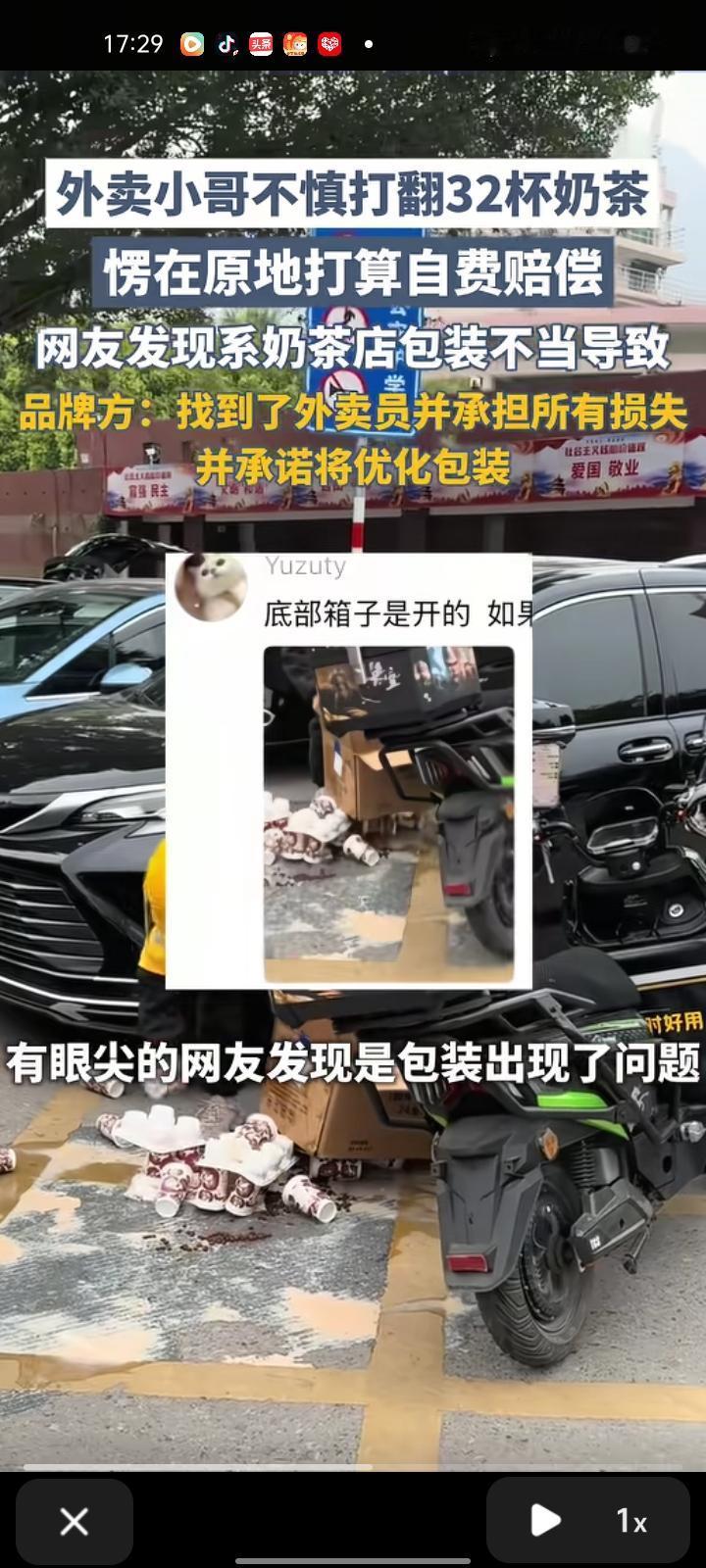 2月7日,福建莆田。外卖小哥不慎打翻32杯奶茶,他拿着手机愣在原地,看着地上的狼藉,很快就打电话跟顾客说明原因,并回到奶茶店自费重新下单。看着他手忙脚乱地捡起散落一地的奶茶,不少网友感到共情,有眼尖的网友发现是包装出了问题,于是都在评论区艾特品牌方。 品牌方回应称,找到外卖员并承担所有损失,并承诺优化包装。 一杯奶茶的倾覆,撞碎的是打工人的日常不易,却撞出了最动人的人间温情。外卖小哥的主动担当,是平凡生活里最珍贵的坚守;品牌方的暖心回应,是企业最温柔的温度。世间美好,从来都是善意与担当的双向奔赴,一份责任,一份体谅,便足以让平凡的日子满是光亮。