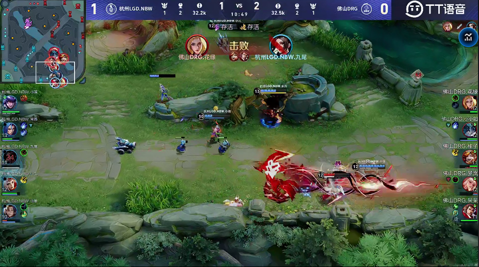 关键龙团被花缘夏洛特抓住机会,下路草里击杀九尾不知火舞
