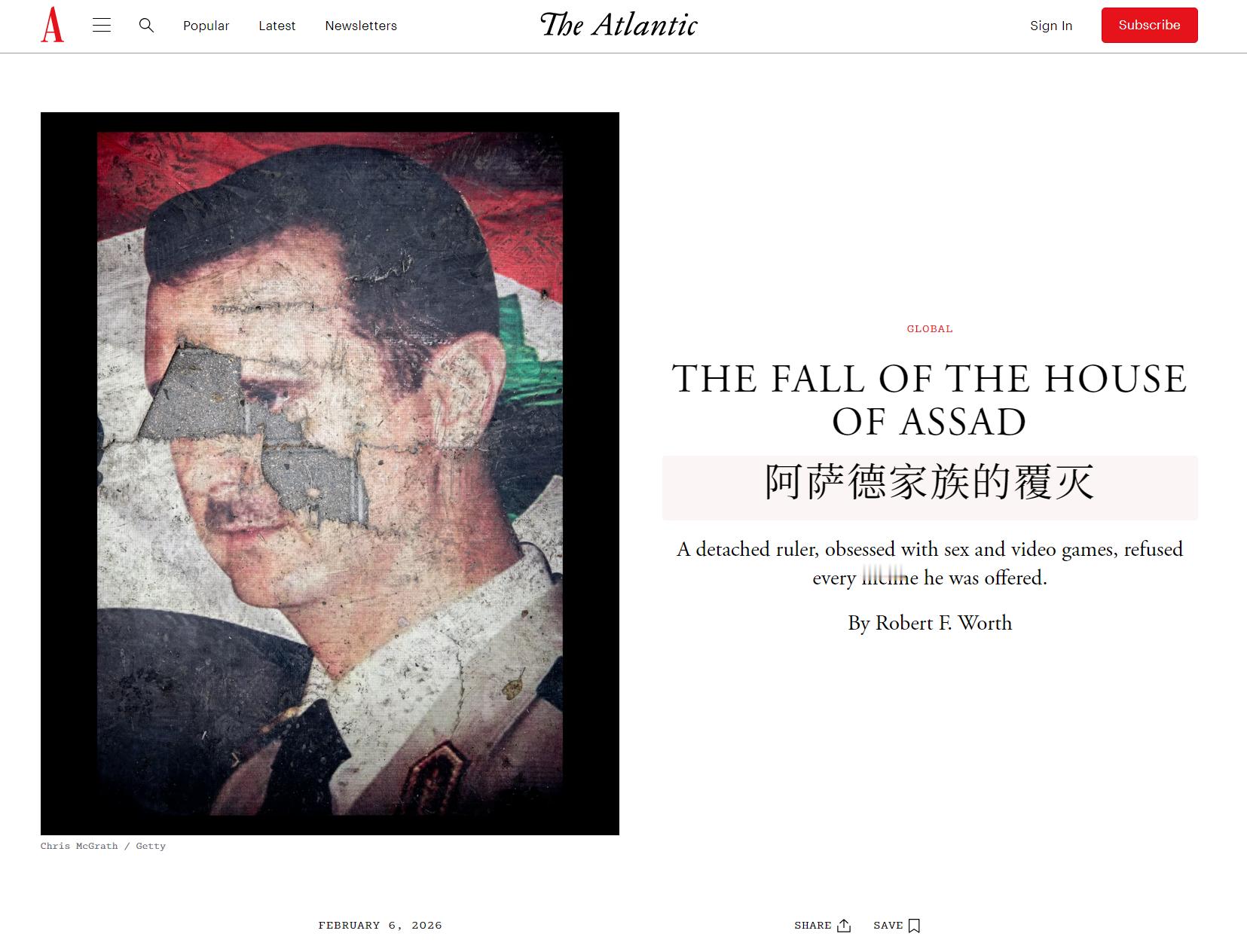 🔻美国《大西洋月刊》说:“巴沙尔·阿萨德沉溺于doi和打游戏,多次拒绝了地区大国和西方国家提出的外交救援方案,即使在最后的日子里,各方仍提出合作条件,但阿萨德始终不愿妥协,也不愿接受对其权力的任何限制。”🔻感觉这个作者有点酸了。🔻“你们怎么样,关我什么事?”海外新鲜事热点现场
