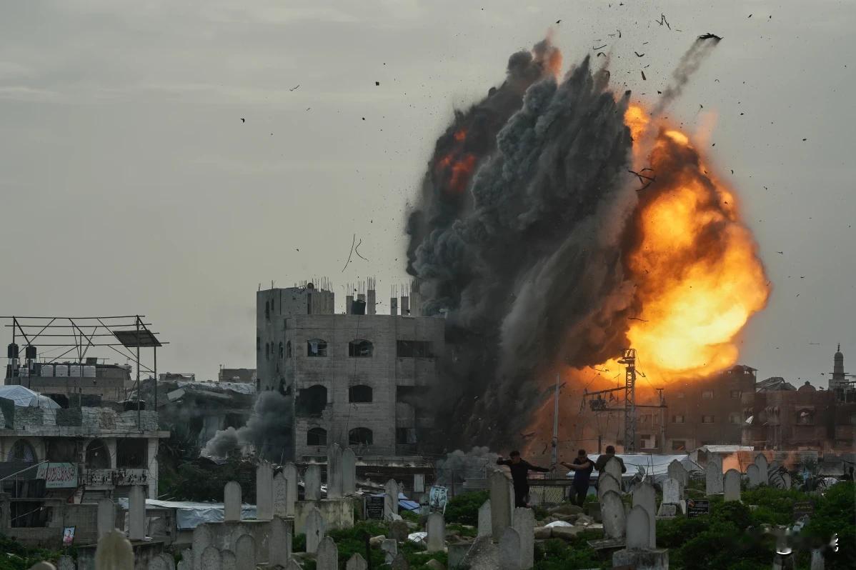 〔美国记者的相机捕捉到了以色列导弹爆炸瞬间的惊人影像。〕在加沙,居民周五去墓地祭奠逝去的亲人。墓碑之间挤满了哀悼者,阿尔什拉菲在墓地的尽头安顿下来,“因为担心有以色列导弹,所以我们需要时刻保持警惕。” 在第一幕中,一枚以色列炸弹被冻结在半空中,距离击中目标只有几英尺,墓地参观者转身逃离。 在随后的画面中,灼热的火焰和烟雾从建筑中喷发出来。碎片喷向天空。建筑物摇摇晃晃地倒塌了。 阿尔什拉菲说:“爆炸声巨大,强烈得超乎想象。”“这是难以置信的暴力屠杀。”