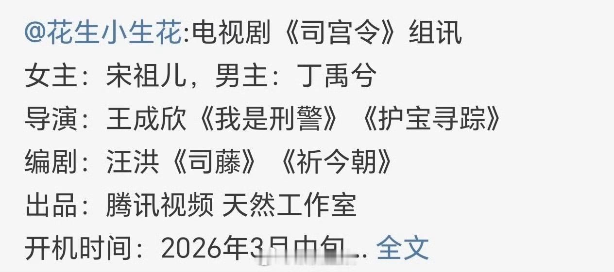 看到🍉主爆料司宫令一直遛宋祖儿和丁禹兮,组讯都已经来了,好奇🐧怎么凑成这对的🤔真有本事 没换过别人,是真的概率很大了吧~预计3月开机,你们觉得这对cp如何?