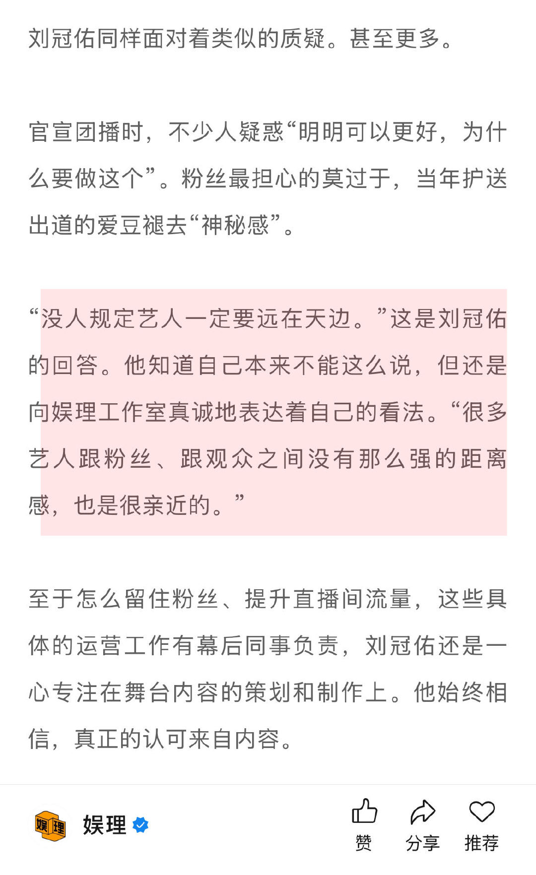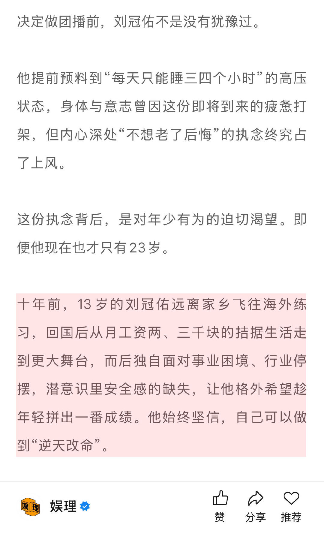 刘冠佑回应被说做团播可惜了 林超泽回应团播为了赚快钱 脖子上的旧伤还在隐隐作痛,需要每周进行针灸治疗。但略显神奇的是,高压引发的斑秃竟然迎来了好转。团播事业已被他纳入为“赚钱养梦”的逻辑,期间获得的曝光与工作机会,是支撑他继续追逐舞台梦想的底气。 刘冠佑林超泽谈爱豆做团播↓